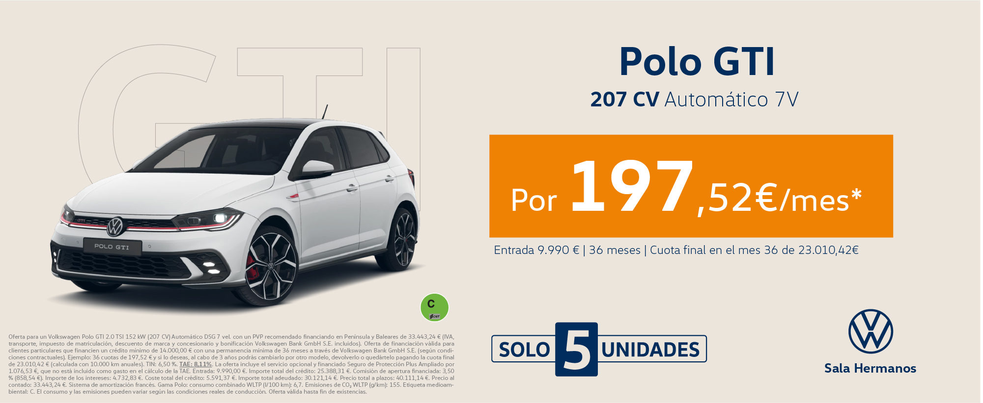 ¡Solo 5 unidades! Polo GTI por 197€/mes*